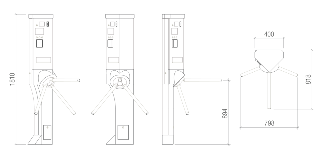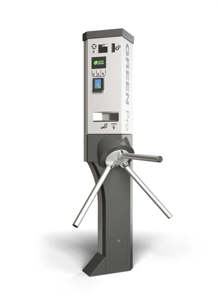 GP4AT je kombinací obousměrného trojramenného turniketu a automatické platební stanice.
