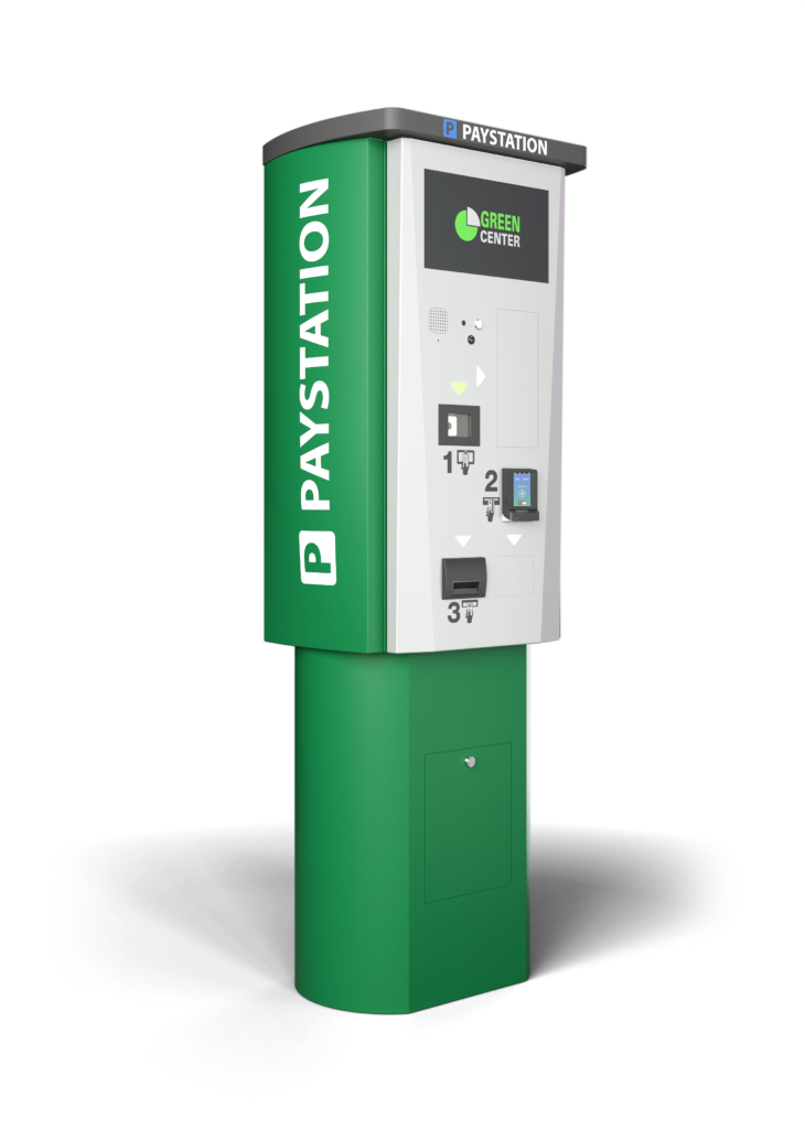 GP4MC je kompaktní bezhotovostní platební stanice určená k výběru parkovného pomocí platebních karet a slevových kupónů.