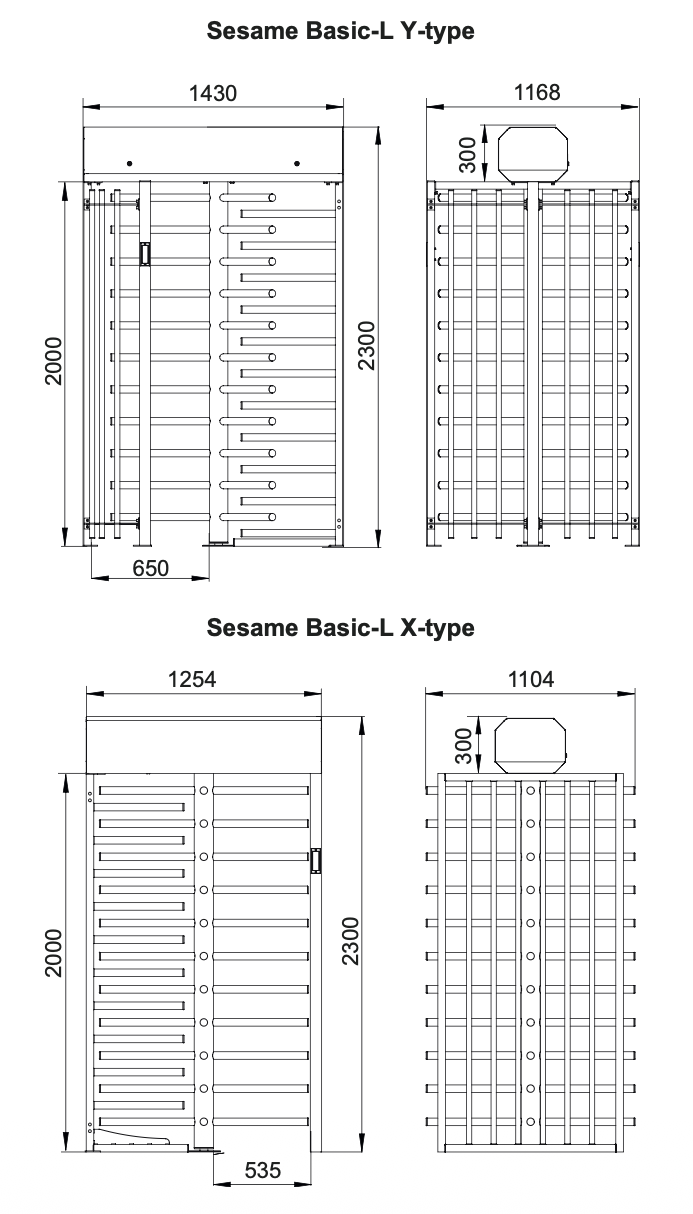 2300 x 1254 x 1300 mm